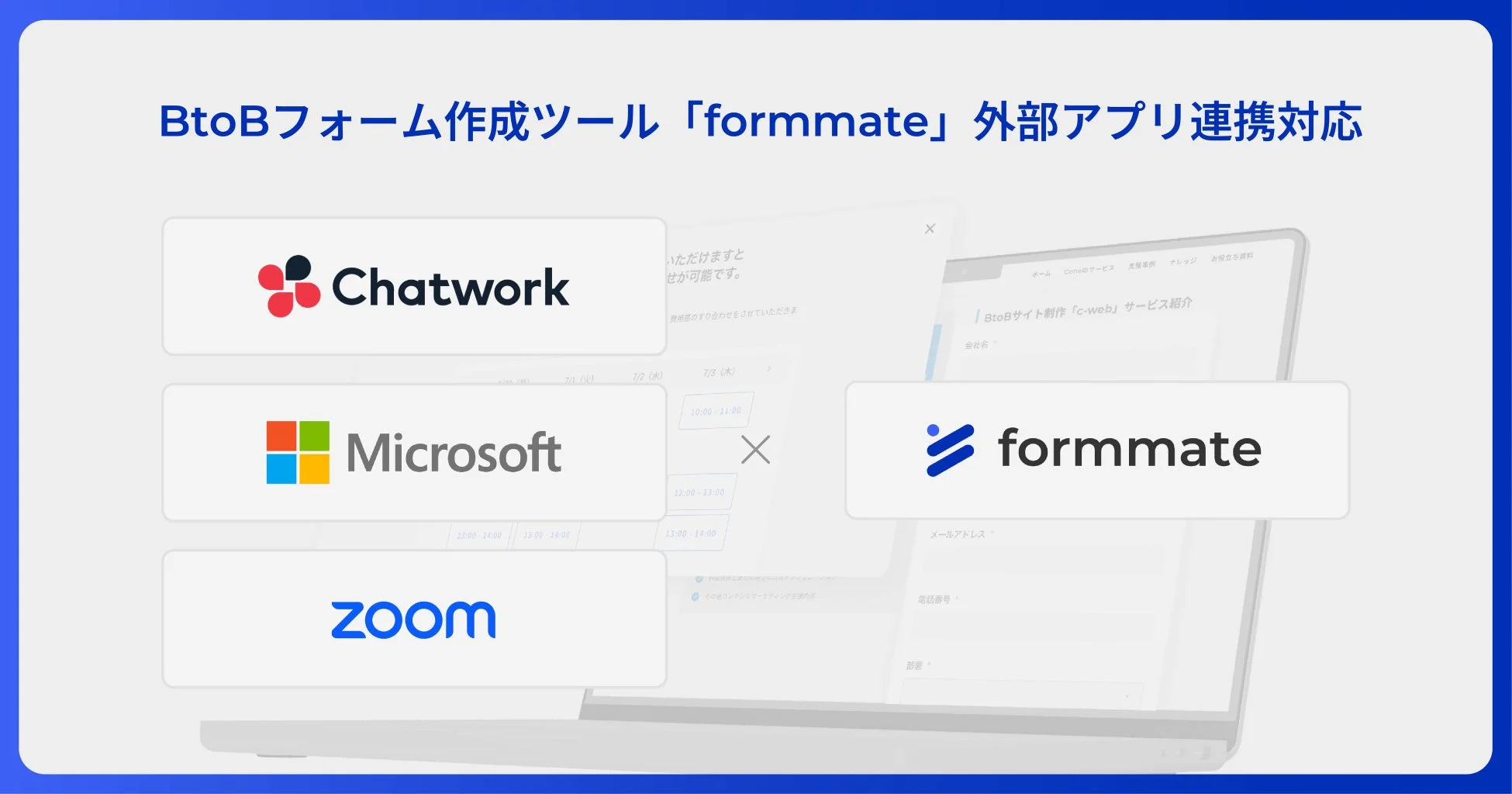 株式会社Coneが開発・提供するBtoB企業向けフォームツール「formmate(フォームメイト)」は、この度、新たに「Chatwork」「Microsoft Teams」「Zoom」との外部連携を開始しました。これにより、企業の多様なビジネスツール環境に合わせた柔軟な運用が可能となり、インバウンドマーケティングにおける商談創出のさらなる効率化が期待されます。