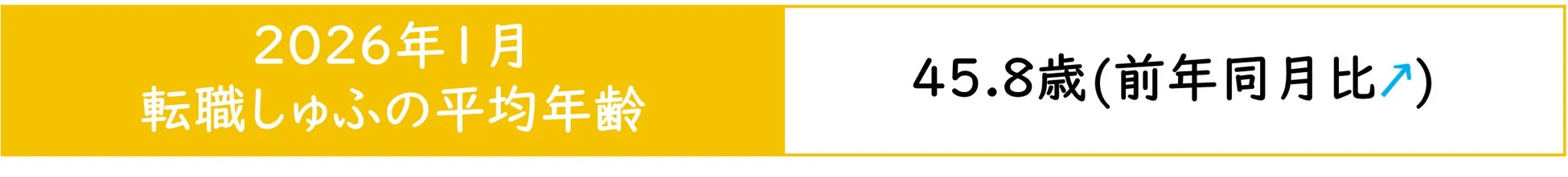 2026年1月の転職しゅふの平均年齢は45.8歳となり、前月と比較して0.9歳低下しました。一方、前年同月と比較すると1.5歳の上昇となっています。