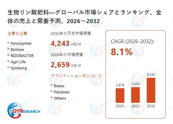 QY Research株式会社は、世界の生物リン酸肥料市場に関する包括的な調査レポート「生物リン酸肥料―グローバル市場シェアとランキング、全体の売上と需要予測、2026~2032」を公開しました。このレポートは、持続可能な農業の推進に不可欠な生物リン酸肥料の市場動向、競争環境、将来予測について詳細に分析しています。