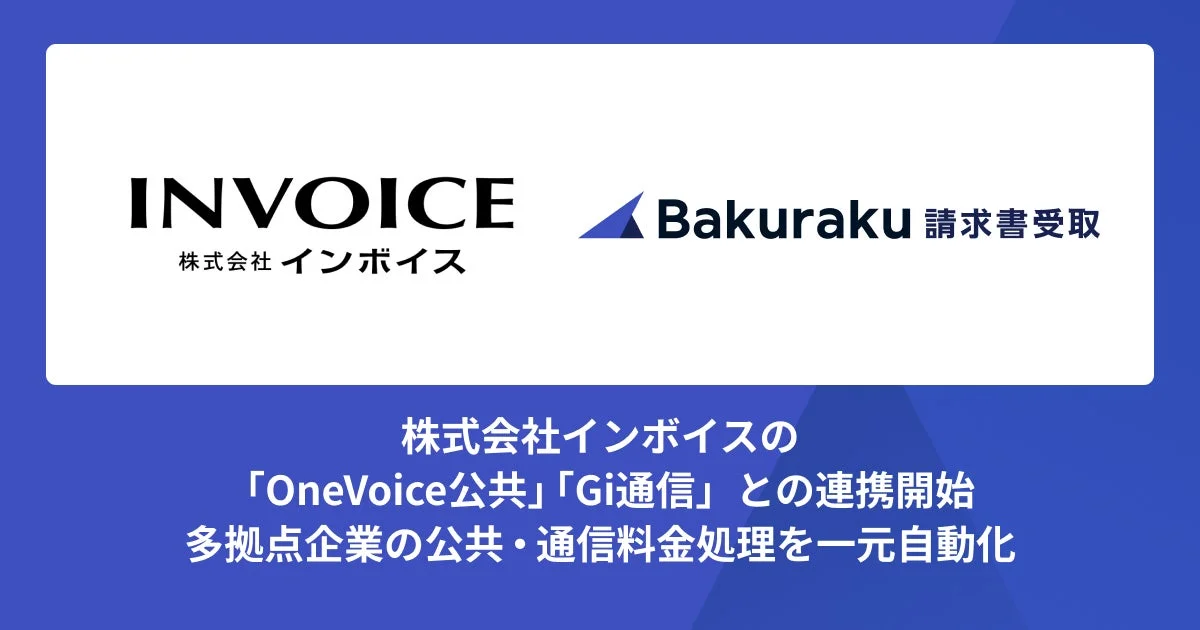 株式会社LayerXが提供するクラウド請求書受領ソフト「バクラク請求書受取」は、株式会社インボイスが提供する公共料金・通信料金の一元管理サービス「OneVoice公共」「Gi通信」との連携を開始しました。