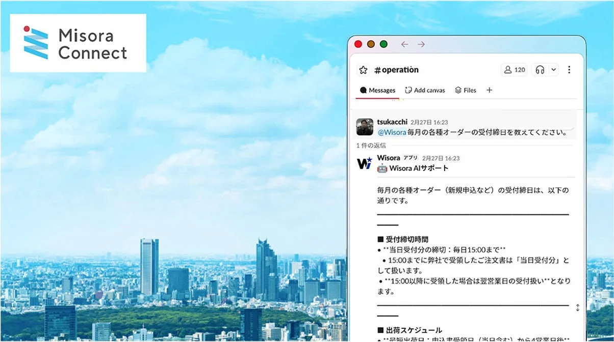 ミソラコネクト、生成AIボット「Wisora」導入で社内問い合わせ7割削減