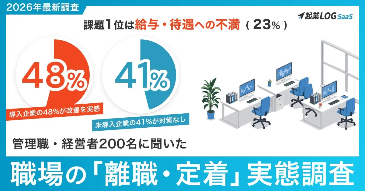 SaaS比較メディア「起業LOG SaaS」は、全国の管理職・経営者・自営業者200名を対象に、職場の離職・定着に関する実態調査を実施しました。この調査は、離職防止の取り組み状況やツール導入の実態を明らかにし、企業が直面する課題と今後の対策のヒントを探ることを目的としています。