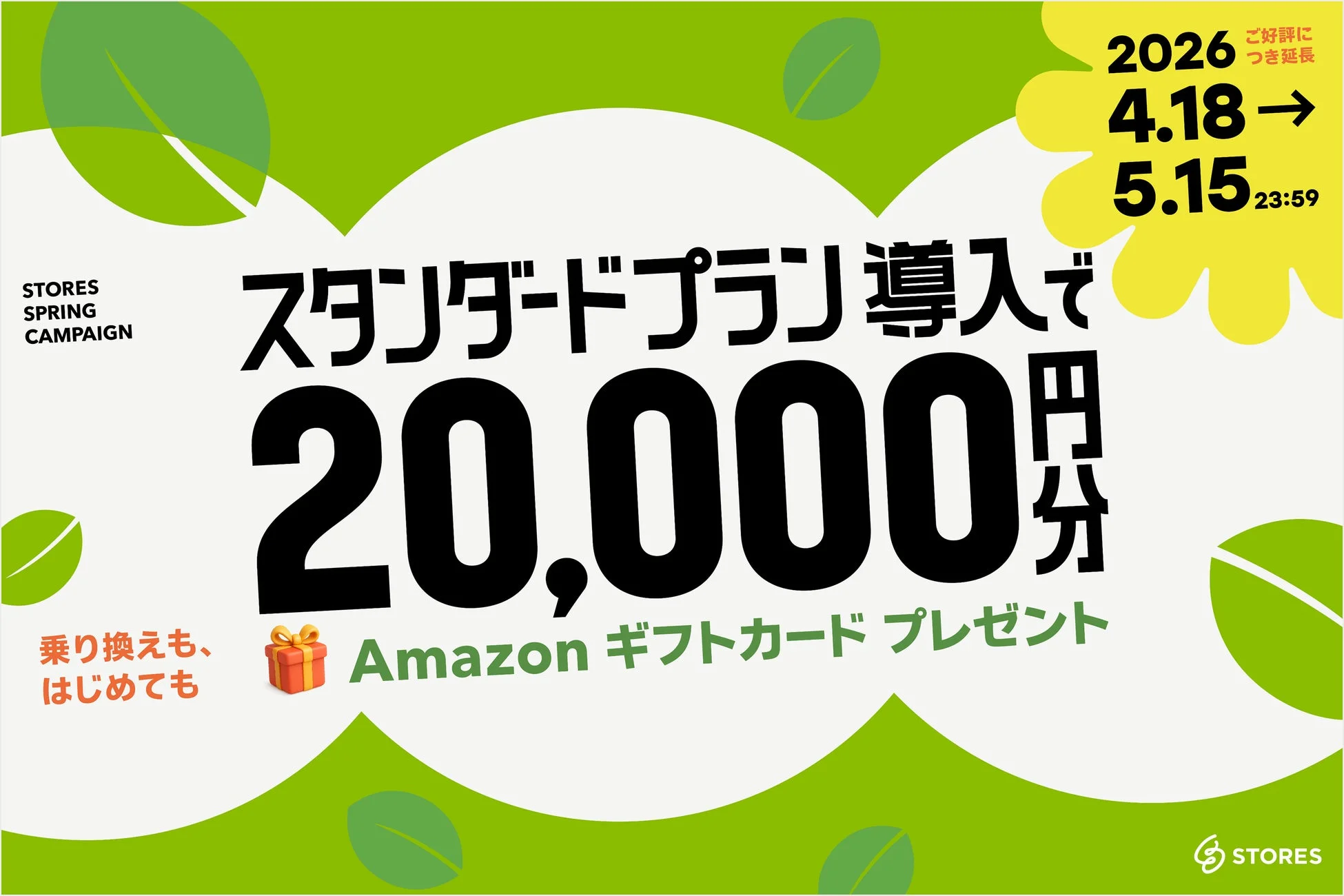 STORES、Amazonギフトカード2万円分進呈キャンペーンを5月15日まで延長!お店の運営を強力サポート