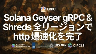 ERPCがSolana Geyser gRPCおよびDirect Shreds(Shredstream)の全リージョンエンドポイントをhttp化し、通信オーバーヘッドを大幅に削減したことを発表しました。この変更により、P99レイテンシで120ms以上の改善が達成され、Solanaブロックチェーンのデータ配信がさらに高速化・安定化しました。