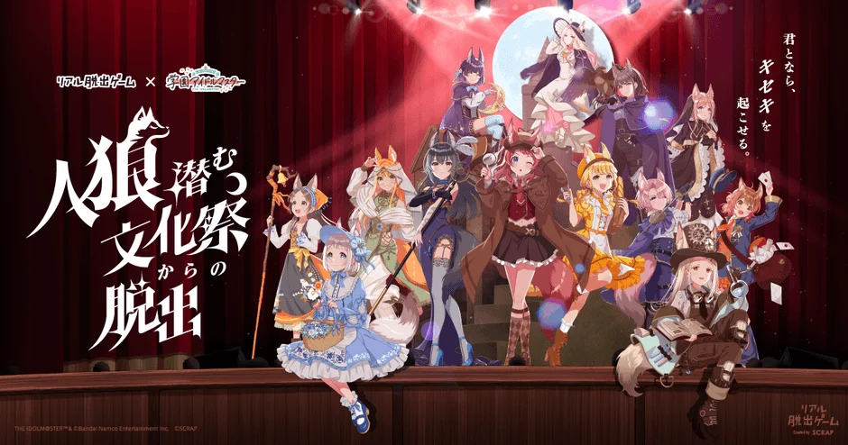 全世界で累計1,700万人以上を動員しているリアル脱出ゲームと、歌とダンスが上手くなるアイドル育成シミュレーション『学園アイドルマスター』がコラボレーションしたリアル脱出ゲーム『人狼潜む文化祭からの脱出』が好評開催中です。