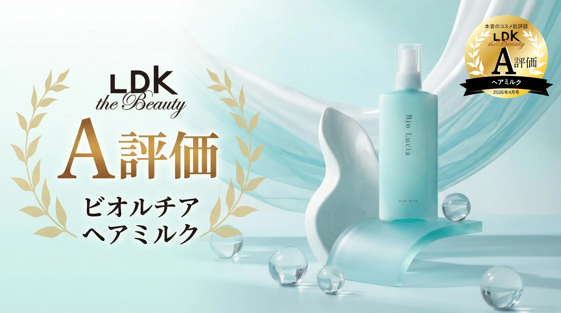 『ビオルチア ヘアミルク』は、その配合成分において満点評価を得ています。4種類の植物オイルをはじめとする美髪成分に加え、CICA(ツボクサエキス)1、グルタチオン2、ナイアシンアミド*3といった、韓国美容界でも注目されるスキンケア成分が贅沢に配合されている点が特に高く評価されました。