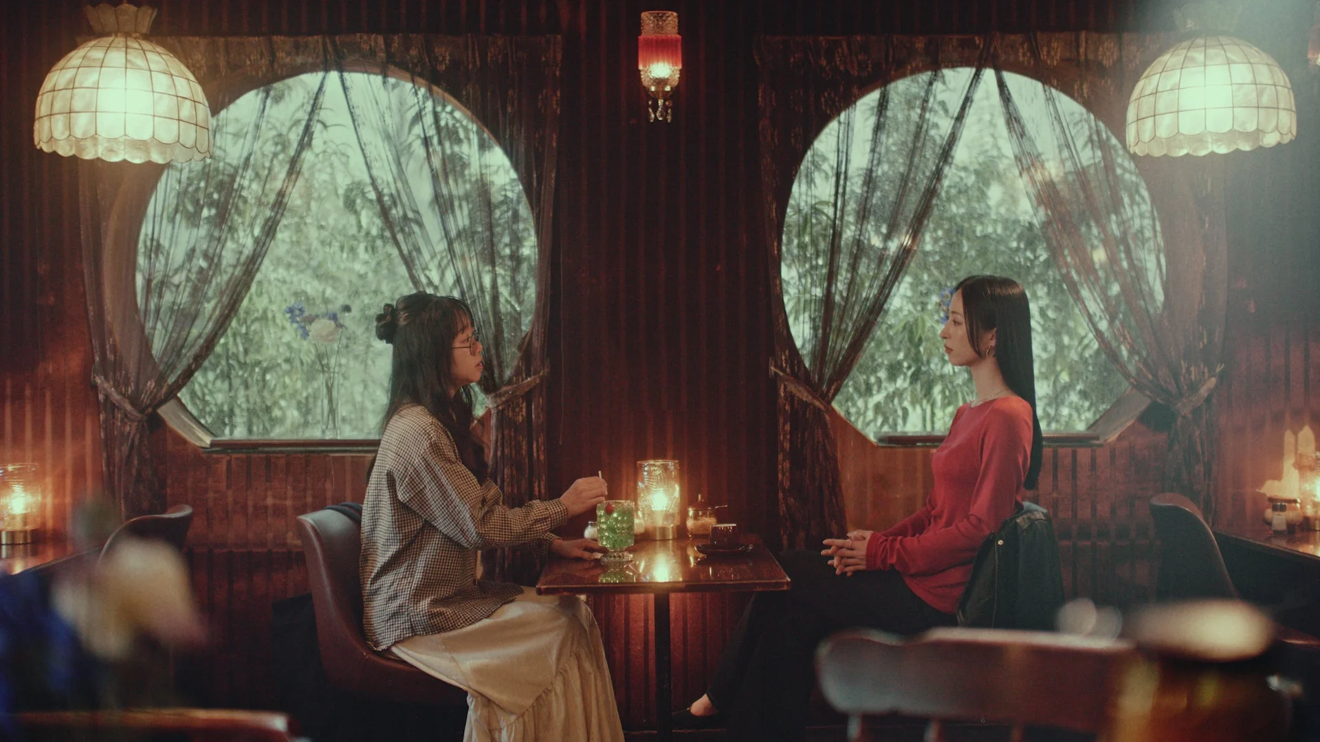 新TVCM「梅雨」篇では、休日のレトロなカフェを舞台に、職場の先輩(Nana Tokuseさん)と後輩(藤谷理子さん)が登場します。