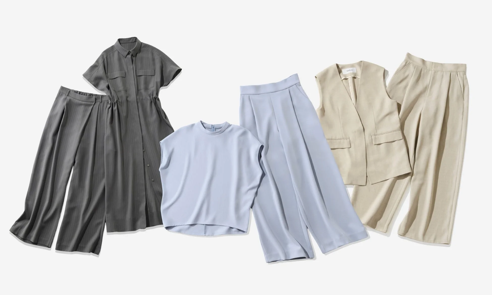 今回は、新年度のワードローブに取り入れたいおすすめのセットアップ3種類を、それぞれの豊富な着回しアイデアと共に紹介します。いずれも上下セットで税込30,800円(税抜28,000円)です。