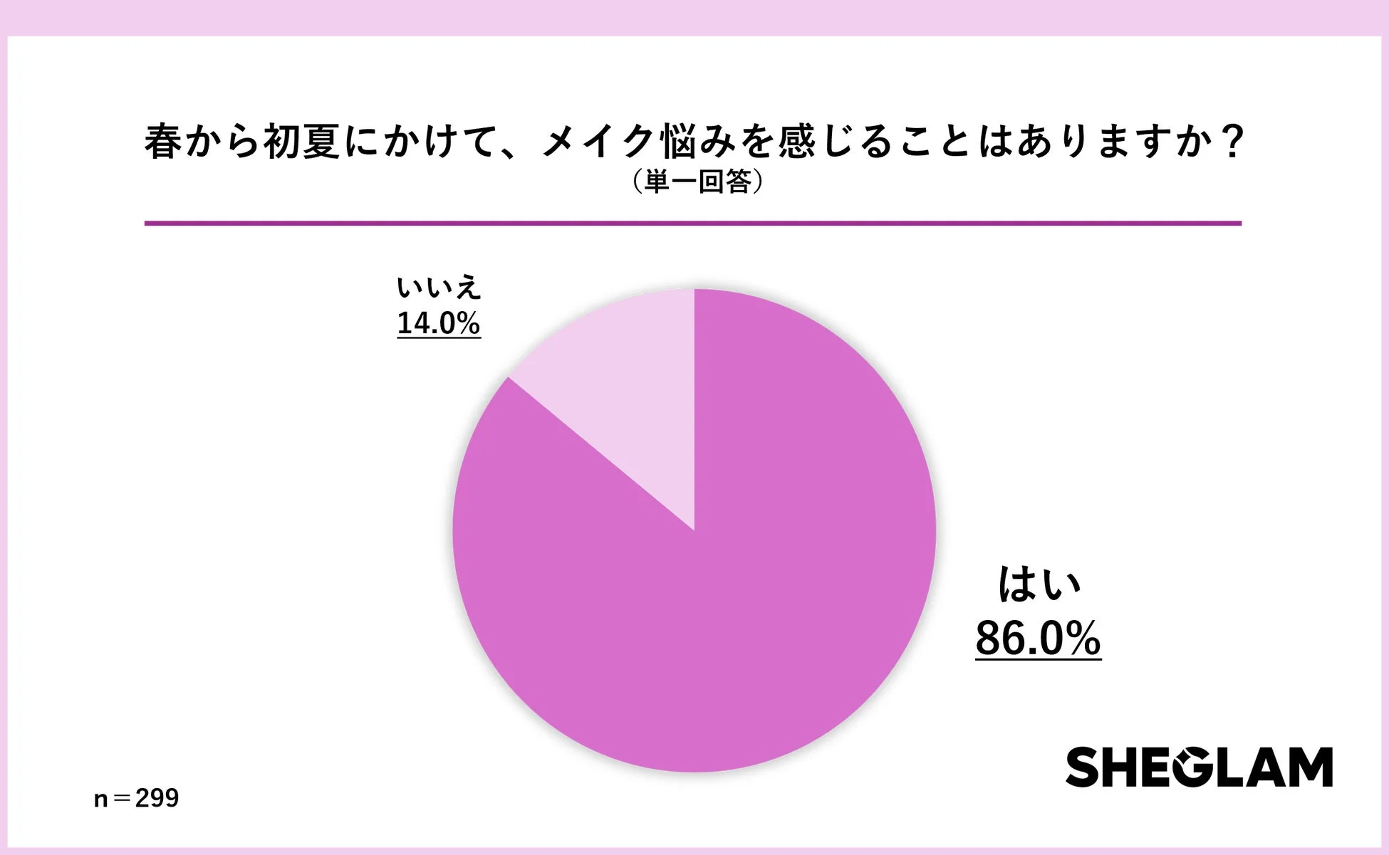 約86%の女性が春から初夏にメイク悩みを感じると回答