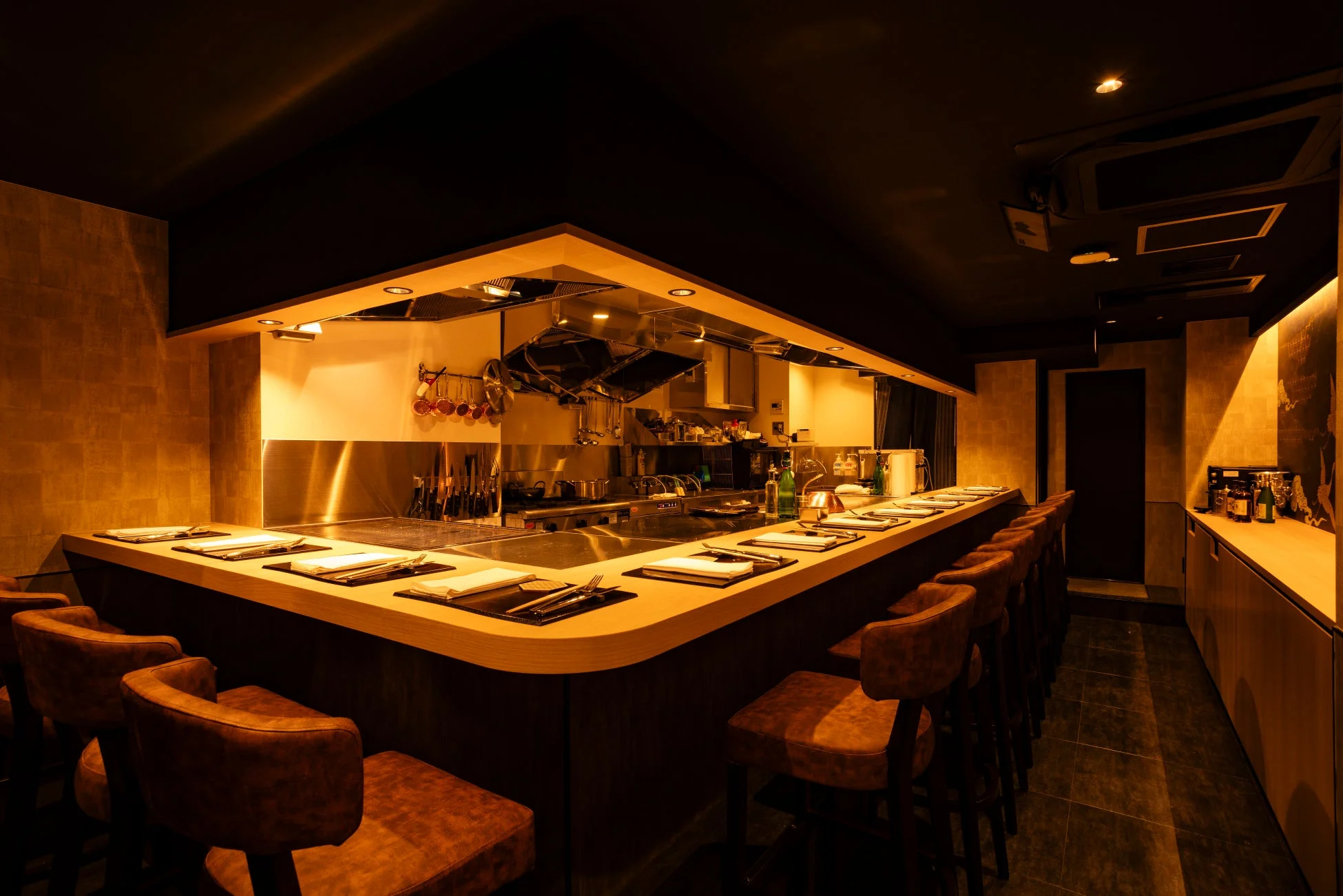 レストランの内装、鉄板焼き