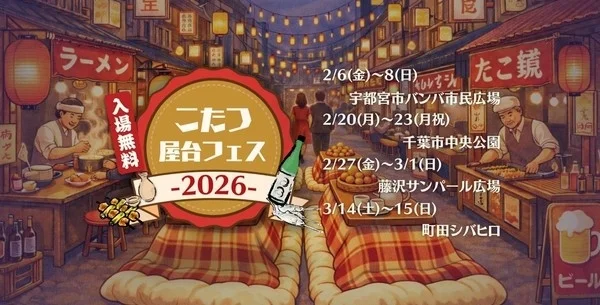 冬の思い出作りに、ご家族や友人と、またお一人様でも、ぜひ『こたつ屋台フェス 2026』に足を運んでみてはいかがでしょうか。