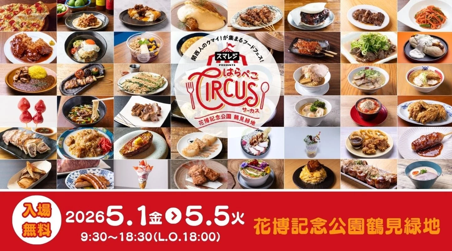 今回の「スマレジ presents はらぺこサーカス」では、関西で高い評価を得る飲食店が過去最大の60店舗集結します。メニューの重複がない多彩なラインナップで、朝9時30分からオープンするため、一日中「食い倒れ」が可能です。