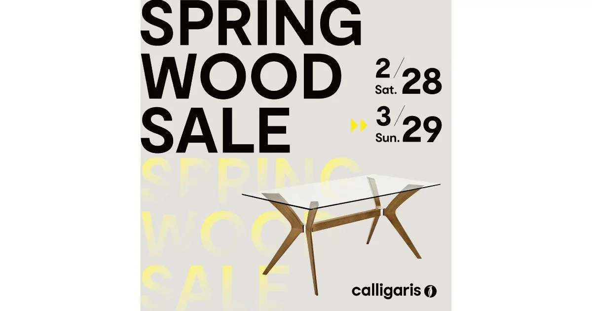 「SPRING WOOD SALE」では、カリガリスの木製シリーズが期間限定の特別プロモーション対象となります。ブランドを象徴するダイニングテーブルやチェアなど、人気のモデルを含む商品が特別条件で提供されます。
