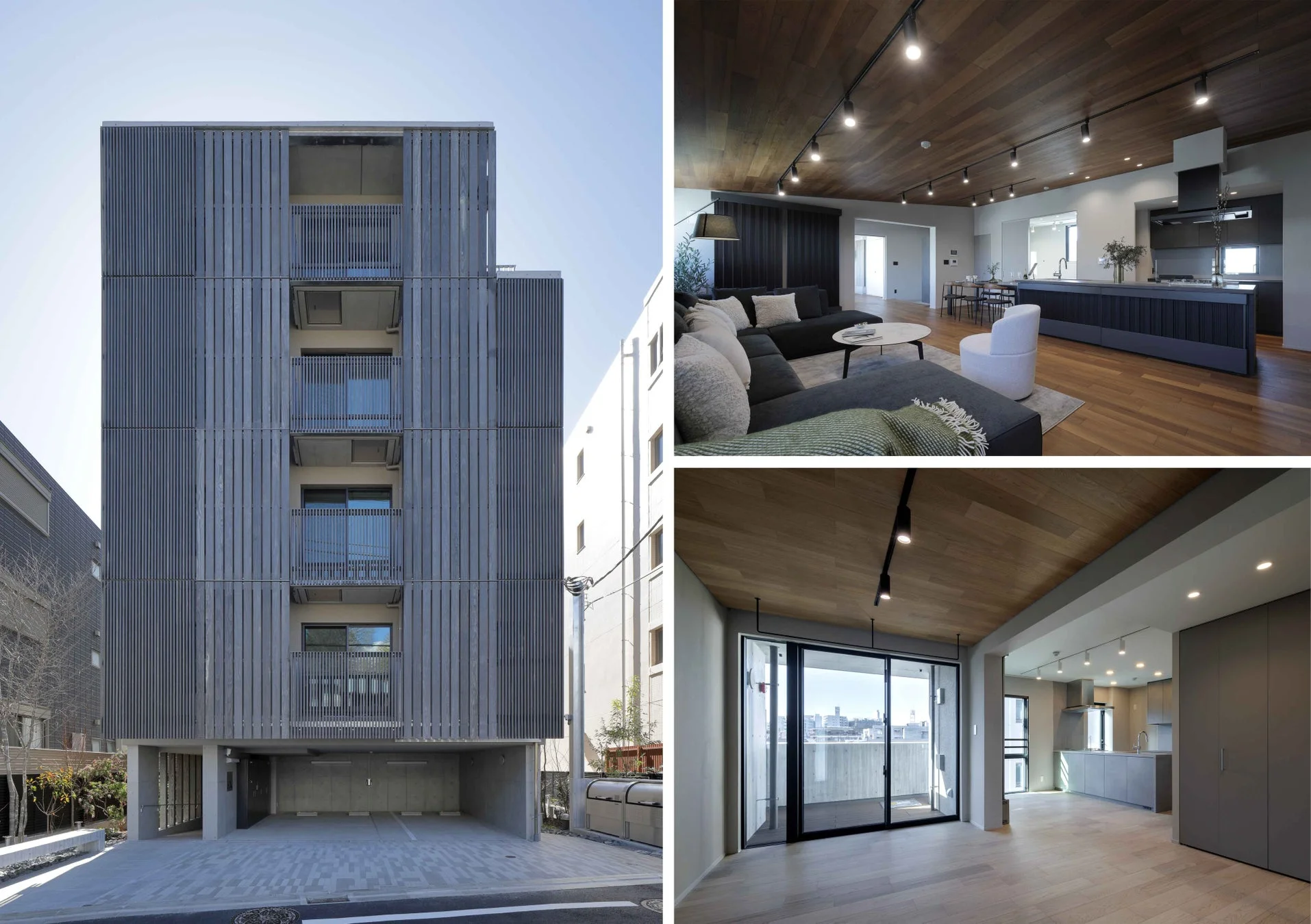 直方体のシンプルな建物を3つの住戸ブロックに分けて配置することで、それぞれの住戸が自然と接続されるようにデザインされています。これにより、光、風、緑を受け入れる空間が創出されています。