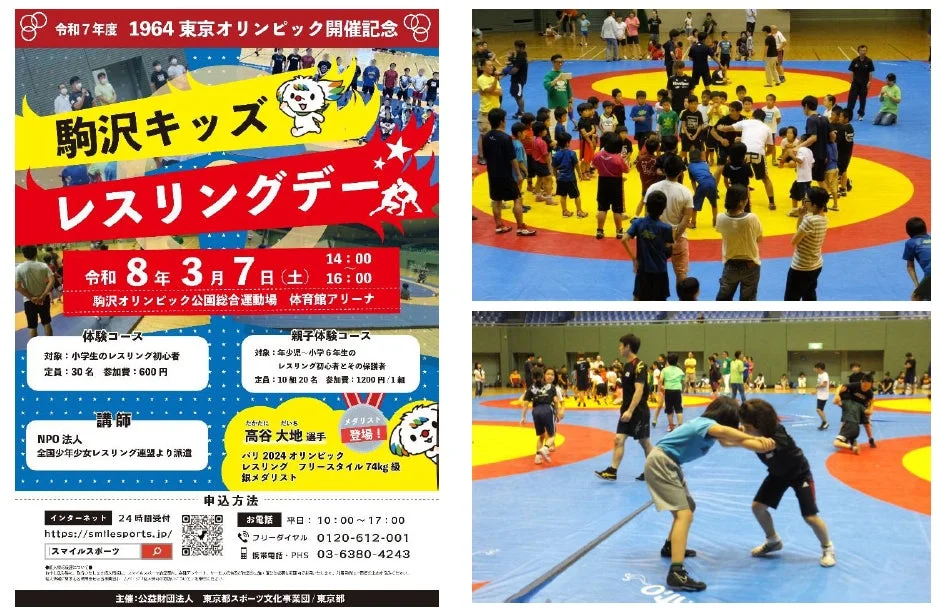 駒沢体育館は、1964年の東京オリンピックでレスリング競技の会場となった、まさに“レスリングの聖地”です。この歴史ある場所で、子どもたちがスポーツに触れる貴重な機会が提供されます。イベントには、パリ2024オリンピック レスリング フリースタイル74㎏級で銀メダルを獲得した高谷大地選手がゲストとして招かれ、子どもたちはトップアスリートとの交流を通じて、レスリングの楽しさや魅力を直接感じることができます。