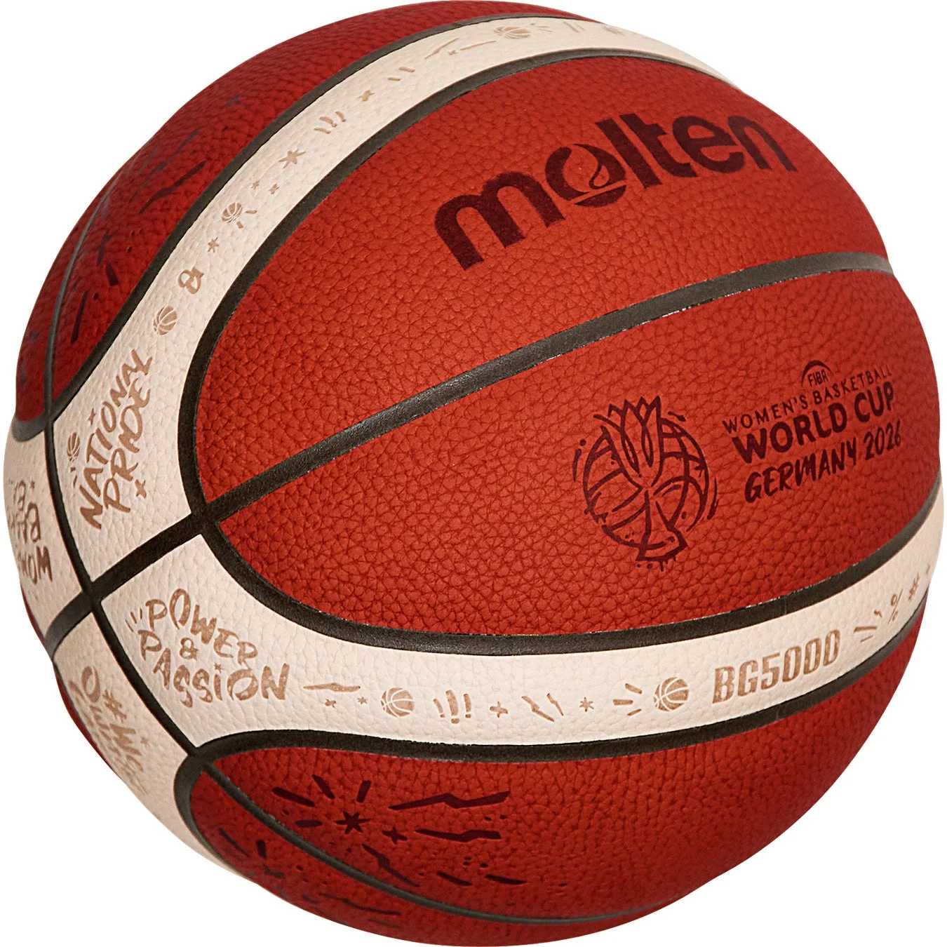 公式試合球は、国際バスケットボール連盟(FIBA)主催の国際大会などで使用されている「BG5000」をベースに、FIBAとモルテンが共同でデザイン開発を行いました。今回のデザインは、多様な文化が共存する都市ベルリンのサブカルチャーとストリートアートの精神を背景に、女子バスケットボールを祝福する世界観をハンドメイド感あふれるベルリンスタイルで表現している点が大きな特徴です。