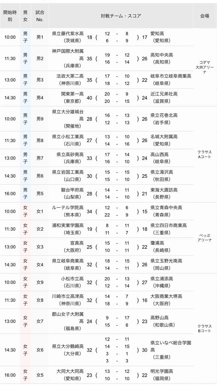 大会初日となる3月24日には、男女それぞれ9試合が行われました。各地の代表校が白熱した試合を展開し、地元大分県からは男子の大分雄城台高等学校と女子の大分鶴崎高等学校が、見事に2回戦への切符を手にしました。