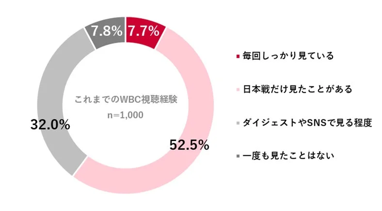 ライト層のWBC視聴経験:日本戦のみ、またはダイジェストが約8割