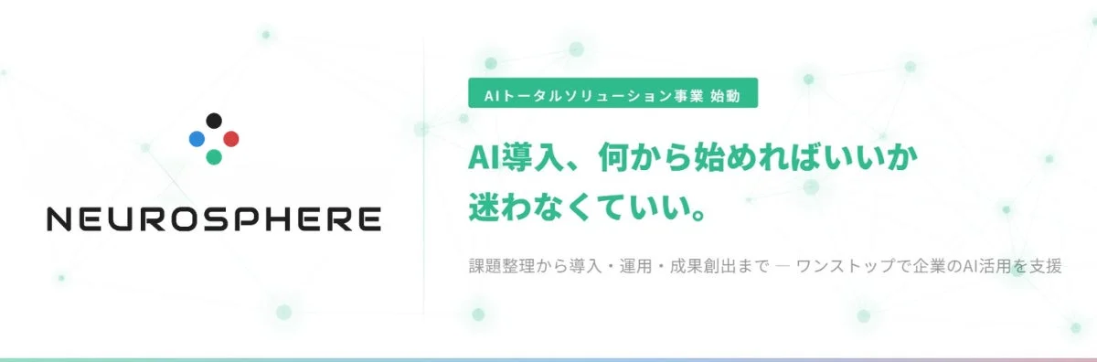 2026年3月10日、株式会社Neurosphereは、企業のAI導入を包括的に支援する「AIトータルソリューション事業」の開始を発表しました。この事業は、AI導入における課題提起から最適なAIサービスの選定、導入実施、運用伴走、そして成果創出までを一気通貫で支援することを目的としています。