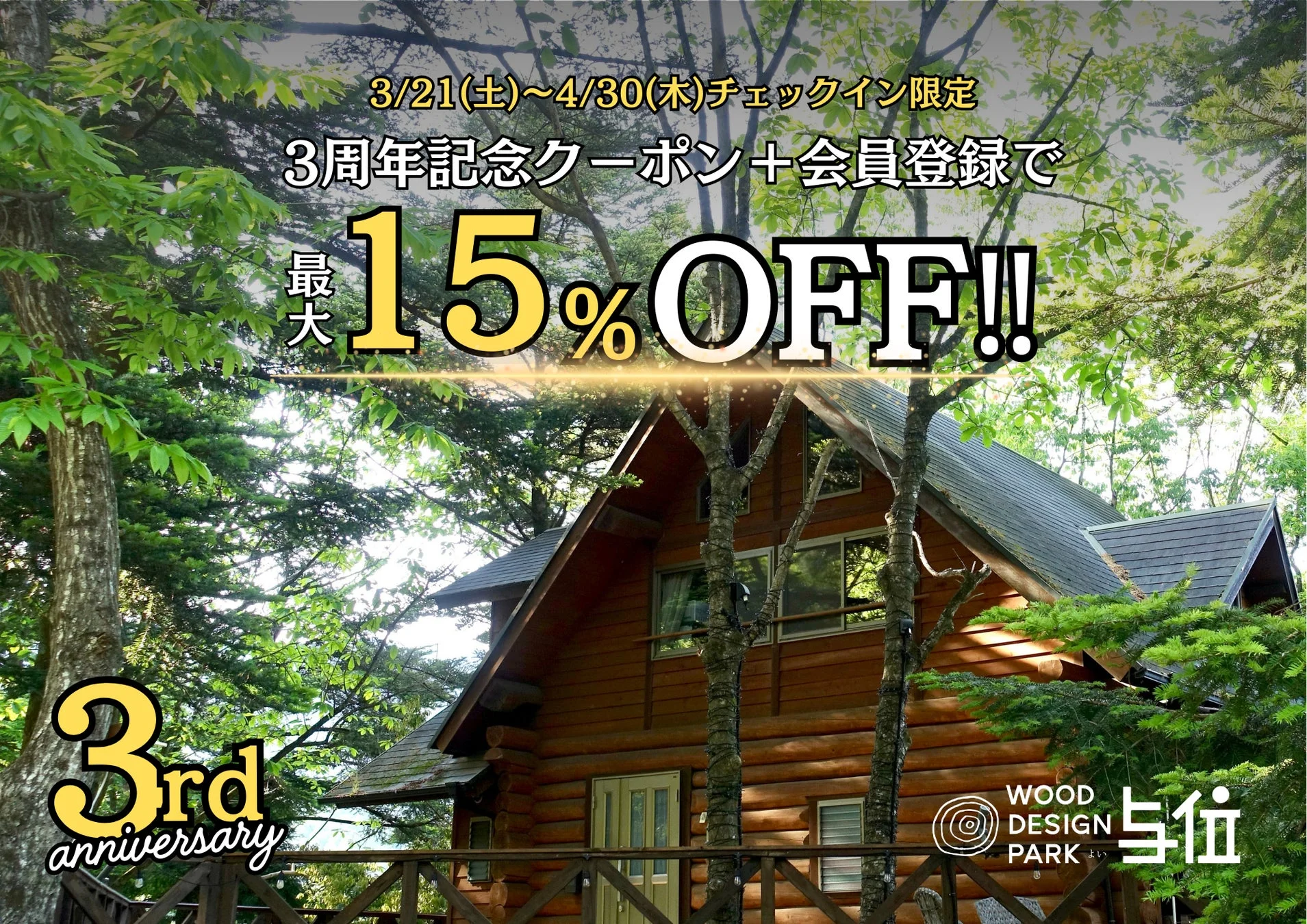 ウッドデザインパーク与位は、愛知県を中心にグランピング施設や室内BBQ施設を展開するウッドデザインパーク株式会社の関西初の店舗です。豊かな自然に囲まれた環境で、快適なアウトドア体験を提供しています。