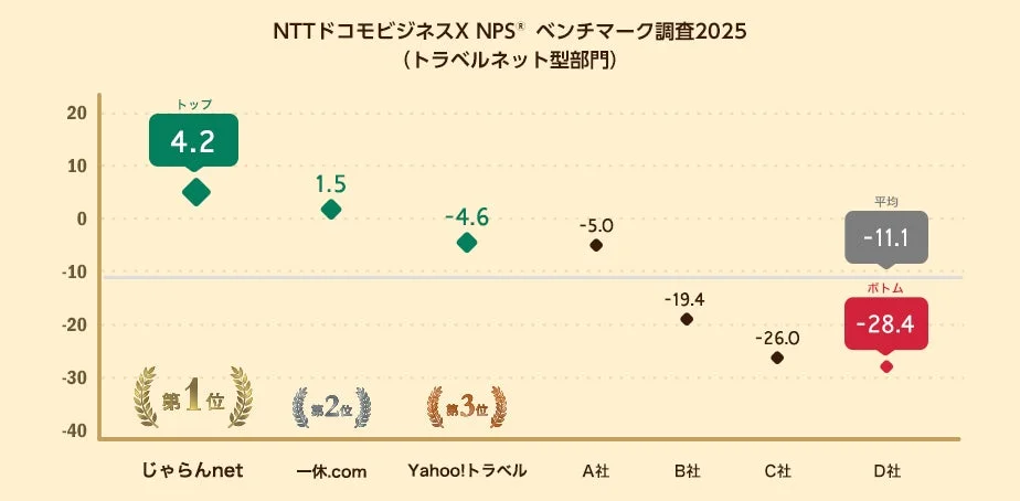 ネット専業型旅行会社のNPS®ベンチマーク調査2025結果発表:じゃらんnetが1位に