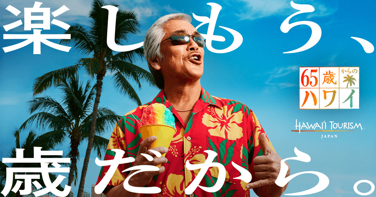 「65歳からのハワイ」プロジェクトの応援団長には、俳優の寺島進さんが就任しました。寺島さんは「楽しもう、歳だから。」というメッセージを体現し、シニア世代にとってのハワイの新たな魅力を発信しています。プロジェクトの公開に合わせて、寺島さんが出演するプロジェクトムービーおよびグラフィック各種も公開されました。ムービーはハワイで撮影され、寺島さんが現地でハワイを満喫する様子を通じて、年齢にとらわれず、自分の時間を主体的に楽しむ旅の魅力を伝えています。