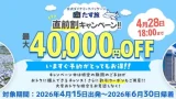 設定日/ご旅行代金: 2026年5月8日乗船から6月29日乗船まで、おひとり様14,000円(税込)